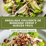 Disfruta de una fresca y saludable Ensalada Crujiente de Manzana Verde con Nueces y Yogur Cremoso, perfecta para cualquier ocasión. Esta receta combina la acidez refrescante de la manzana verde, el crujiente de las nueces tostadas y la suavidad del yogur con un toque dulce de miel y limón, creando una experiencia de sabor excepcional en cada bocado.