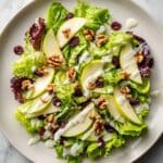 Store any leftover salad in an airtight container in the refrigerator for up to 1 day. Because the apple slices can brown and the lettuce can wilt, it’s best enjoyed fresh. If needed, refrigerate the dressing separately and toss just before serving.