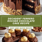 This Ferrero Rocher Chocolate Cake combines rich chocolate layers with creamy hazelnut frosting, inspired by the beloved candy. It’s a show-stopping dessert that’s perfect for special occasions or when you want to treat yourself.