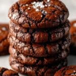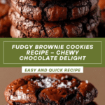 These fudgy brownie cookies combine the rich, dense texture of brownies with the portability and crunch of cookies. Featuring a deep chocolate flavor enhanced by semi-sweet chocolate chips and cocoa powder, these cookies have a crackly top and a slightly underbaked, gooey center for ultimate indulgence. Finished with optional flaky sea salt to balance the sweetness, they’re perfect for chocolate lovers seeking chewy and fudgy treats baked to perfection.