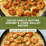 This Garlic Butter Shrimp & Corn Skillet is a quick and flavorful dish featuring tender shrimp sautéed in garlic butter with sweet corn kernels. Perfect for a weeknight dinner, it combines simple ingredients to create a rich and satisfying meal served over rice or pasta.