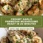 Garlic Parmesan Mushrooms are a quick and delicious side dish featuring tender sautéed white mushrooms bathed in a rich, creamy garlic-parmesan sauce. With just 5 minutes of prep and 15 minutes of cooking, this recipe delivers a luscious, cheesy accompaniment perfect for pairing with steak, chicken, pork, or pasta.