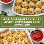 This Garlic-Parmesan Pull-Apart Christmas Tree is a festive and delicious appetizer perfect for holiday gatherings. Soft, cheesy dough balls wrapped around mozzarella pearls, brushed with garlic butter, and sprinkled with Parmesan cheese form a beautiful, shareable tree that’s both visually impressive and irresistibly tasty. Served warm with marinara sauce for dipping, it’s a crowd-pleasing starter that combines gooey cheese with aromatic garlic and herbs.
