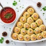 This Garlic-Parmesan Pull-Apart Christmas Tree is a festive and fun appetizer perfect for holiday gatherings. Soft pizza dough pockets filled with melted mozzarella, brushed with garlic butter, and sprinkled with Parmesan make every bite irresistible. Serve warm with marinara sauce for a delightful dipping experience.