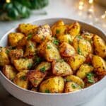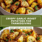 These crispy, golden garlic roast potatoes are the ultimate crowd-pleaser—crispy on the outside, fluffy on the inside, and packed with garlicky goodness. Potatoes are a must on Thanksgiving, and this version delivers maximum flavor with minimum fuss.