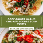 Keywords: ginger garlic chicken soup, chicken noodle soup, Asian chicken soup, healthy chicken soup, comforting soup, easy chicken noodle soup