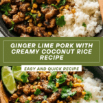 Keywords: ginger lime pork, coconut rice, pork tenderloin recipe, Asian pork recipe, tropical dinner, quick weeknight meal, creamy coconut rice, ginger marinade, easy pork recipe