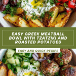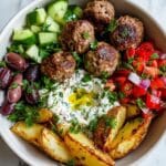 Keywords: Greek meatballs, roasted potatoes, tzatziki sauce, Mediterranean bowl, healthy dinner, Greek recipe