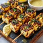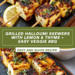 Grilled Halloumi Skewers with Lemon and Thyme are a vibrant and flavorful vegetarian dish, perfect for summer BBQs or quick weeknight meals. Featuring halloumi cheese that holds its shape well when grilled, these skewers combine zesty lemon, fresh thyme, garlic, and juicy vegetables for a deliciously fresh and satisfying bite.