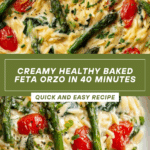 Healthy Baked Feta Orzo is a quick, one-pan Mediterranean-inspired dinner perfect for busy weeknights. Combining roasted feta, fresh vegetables like asparagus and cherry tomatoes, and creamy mascarpone with tender orzo pasta, this vegetarian-friendly dish offers comforting creaminess without complicated sauce-making. Ready in under 40 minutes, it’s an easy, flavorful meal packed with fresh ingredients and ideal for leftovers.