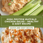 A healthy and easy High Protein Buffalo Chicken Salad featuring shredded chicken mixed with celery, green onions, Greek yogurt, and a spicy buffalo sauce dressing. This flavorful salad is perfect for a protein-packed lunch or light dinner, delivering a tangy kick and creamy texture without mayonnaise.