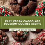 These Homemade Vegan Chocolate Blossom Cookies are a delightful twist on the classic treat, featuring a rich cocoa dough rolled in sprinkles or sugar and topped with a creamy vegan chocolate kiss. Perfectly soft and fudgy with a decorative sparkle, these cookies are entirely plant-based and easy to prepare, making them ideal for vegan dessert lovers and holiday baking alike.
