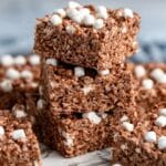 Keywords: Hot Chocolate Rice Krispies Treats, Rice Krispies recipe, marshmallow treats, hot chocolate dessert, winter snacks, holiday treats