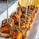Hot Honey Salmon Bites are a quick and flavorful appetizer featuring tender salmon cubes cooked to perfection and glazed with a sweet and spicy honey sauce. Perfect for entertaining or as a delicious snack, these bites balance heat and sweetness with a hint of smoky paprika and garlic.