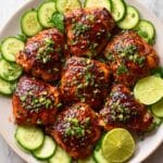 Ina Garten’s Indonesian Chicken recipe features tender, juicy bone-in, skin-on chicken thighs marinated in a flavorful blend of soy sauce, honey, peanut butter, and aromatic spices. The chicken is either grilled or roasted to perfection, then garnished with fresh cilantro and toasted sesame seeds, delivering a deliciously balanced dish inspired by Indonesian flavors.