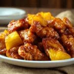- Add Pineapple Chunks: Scatter the pineapple chunks on top of the sauced chicken to infuse sweetness and texture during cooking.
