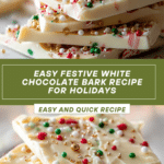 This irresistibly easy festive white chocolate bark is a delightful holiday treat that combines creamy white chocolate with tart dried cranberries, crunchy toasted nuts, minty candy cane pieces, and sparkling sprinkles. Perfect for gift-giving or holiday parties, this no-bake bark is simple to make and sure to brighten any festive occasion.