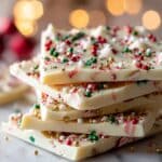This irresistibly easy festive white chocolate bark is a delightful holiday treat that combines creamy white chocolate with tart dried cranberries, crunchy toasted nuts, minty candy cane pieces, and sparkling sprinkles. Perfect for gift-giving or holiday parties, this no-bake bark is simple to make and sure to brighten any festive occasion.