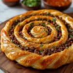 Turkish Spiral Borek with Spiced Ground Beef is a flaky, savory pastry that brings the vibrant flavors of Istanbul’s streets right to your table. Layers of crispy phyllo dough envelop a spiced ground beef filling, creating a comforting dish that’s perfect for family dinners or special gatherings. Its beautiful spiral shape makes it as stunning as it is delicious.