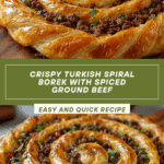 Keywords: Turkish Spiral Borek, Spiced Ground Beef Borek, Turkish Borek recipe, Phyllo pastry recipes, Middle Eastern pastries, Comfort food, Flaky borek, Ground beef pastry
