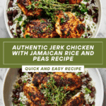 This authentic Jerk Chicken with Jamaican Rice and Peas recipe combines spicy, flavorful chicken marinated in a traditional jerk sauce with a creamy, aromatic rice dish cooked with kidney beans and coconut milk. Perfect for a taste of the Caribbean, it offers a balance of heat, sweetness, and savory flavors that can be enjoyed any day.