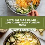 Keywords: Keto Big Mac Salad, keto salad, low carb salad, Big Mac dressing, ground beef salad, keto recipe, healthy fats, high protein salad