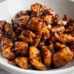 This Keto “Food Court” Bourbon Chicken is a delicious one-pot dish that’s both low carb and bursting with flavor. Tender chicken thighs are marinated in a sweet and savory bourbon sauce, then cooked to a crispy, caramelized finish. Perfect for a quick weeknight dinner or meal prep.