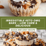 Keto OMG Bars are a delicious low-carb treat that perfectly combines a buttery crust, rich caramel sauce, and a crunchy nut topping with dark chocolate. These bars are ideal for anyone following a keto diet who wants to satisfy their sweet tooth without the carbs.