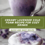Keywords: lavender cream cold foam, lavender syrup foam, coffee topping, floral foam, cold foam recipe, beverage garnish
