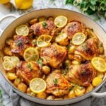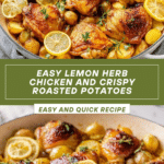 Keywords: Lemon herb chicken, roasted chicken thighs, lemon garlic chicken, roasted baby potatoes, one-pan chicken dinner, easy chicken recipe, weeknight dinner, healthy roast chicken