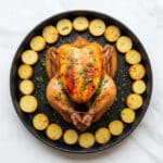- Baste: Every 20 to 30 minutes during roasting, baste the chicken with the pan juices to keep it moist and enhance flavor.