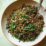 - French green lentils or Black Beluga lentils hold their shape well and are preferred for this recipe.