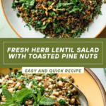 Keywords: lentil salad, fresh herbs, pine nuts, lemon dressing, healthy salad, Mediterranean salad, vegetarian, quick salad