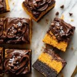 This Marbled Pumpkin Snacking Cake is a moist, flavorful treat combining the warm spices of pumpkin with a decadent chocolate swirl. Featuring a blend of almond and oat flours, this cake offers a deliciously tender texture with a perfectly balanced sweetness from brown sugar and maple syrup. Ideal for fall snacking or dessert, it’s topped with a rich chocolate buttercream, mini chocolate chips, and flaky sea salt for a hint of savory contrast.