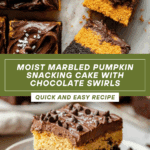 This marbled pumpkin snacking cake combines the warm flavors of pumpkin spice with rich chocolate for a delightful treat. Perfect for cozy mornings or an afternoon pick-me-up, it’s moist, tender, and beautifully swirled with a luscious chocolate layer.