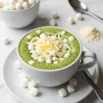 - Serve: Pour the hot matcha white chocolate into glass mugs. For an elevated presentation and taste, top with toasted marshmallows if desired.