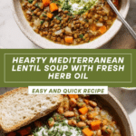 This Mediterranean Lentil Soup is a hearty and flavorful dish packed with nutritious green lentils, aromatic herbs, preserved lemon, and a unique blend of spices. Cooked slowly to melt flavors together, it offers a comforting and nourishing meal perfect for any season. Topped with a fresh herb oil and a creamy yogurt sauce, this soup combines vibrant, tangy, and earthy notes in every spoonful.