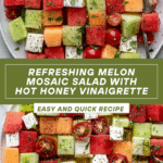 This Melon Mosaic Salad is a refreshing and vibrant summer dish that’s easy to prepare and packed with fresh flavors. Juicy watermelon and cantaloupe combine with crisp cucumber, creamy avocado, and salty feta, all brought together with a zesty hot honey vinaigrette. Perfect for warm days or as a bright side to any meal!