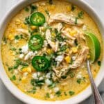 Keywords: Mexican street corn soup, elote soup, chicken and corn soup, creamy corn soup, fire-roasted corn soup