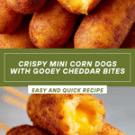 These Mini Corn Dogs with Cheddar are a fun and delicious twist on a classic fair favorite. Bite-sized and bursting with melty cheese, they’re perfect for parties, snacks, or anytime you crave something crispy and comforting.