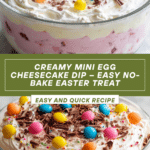 Mini Egg Cheesecake Dip is a creamy and festive no-bake Easter dessert featuring smooth cream cheese, fluffy whipped topping, and crunchy Cadbury Mini Eggs. Perfectly sweet and quick to prepare, this dip is an ideal treat for holiday parties, gatherings, or any fun celebration.
