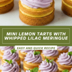 These Mini Lemon Tarts with Lilac Meringue combine a buttery, flaky tart shell with a smooth, tangy lemon curd filling topped with a whimsical lilac-colored meringue. Perfectly portioned for individual servings, these elegant desserts offer a delightful contrast of flavors and textures that are sure to impress at any occasion.