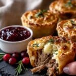 Keywords: Mini pot pies, Thanksgiving recipe, turkey pot pie, cranberry pot pie, savory pies, holiday appetizers, homemade pastry