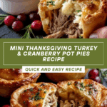 These Mini Thanksgiving Turkey & Cranberry Pot Pies are the perfect festive bite-sized comfort food. Filled with a savory turkey mixture and a hint of cranberry sweetness, they’re easy to make and sure to impress your guests.