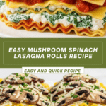 Keywords: Mushroom Spinach Lasagna Rolls, Vegetarian Lasagna, Italian Lasagna Recipe, Baked Pasta Rolls, Spinach Mushroom Recipe