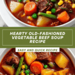 This old-fashioned vegetable beef soup is a comforting, hearty meal perfect for chilly days. Slow-cooked with tender pot roast and a variety of fresh and frozen vegetables, it’s a classic dish that warms from the inside out.