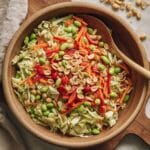A vibrant and refreshing Napa Cabbage Salad with a flavorful sesame-garlic dressing, combining crisp vegetables, toasted peanuts, and optional edamame for added protein. This easy-to-make salad is perfect for a light lunch or a healthy side dish in just 30 minutes.