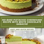 Keywords: no-bake, pistachio cheesecake, no-bake cheesecake, pistachio dessert, white chocolate ganache, elegant dessert, no oven cheesecake