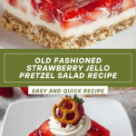 Old Fashioned Strawberry Jello Pretzel Salad is a delightful layered dessert featuring a crunchy pretzel crust, a creamy cream cheese topping, fresh strawberries, and a strawberry Jello layer. This retro favorite balances sweet, salty, and tart flavors, making it perfect for potlucks and family gatherings.