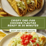 One-pan chicken flautas are a delicious and easy-to-make dish featuring tender shredded chicken and sautéed onions wrapped in warm flour tortillas. Crispy on the outside and flavorful on the inside, they are perfect for a quick weeknight dinner or casual gathering.